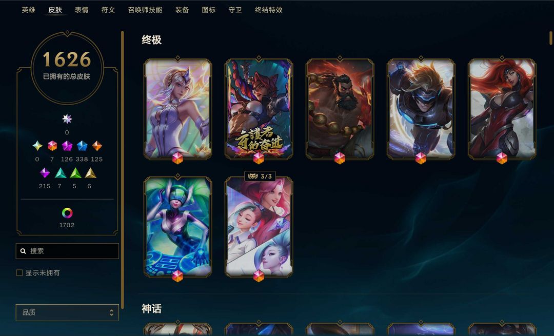 【联盟三区★不可排位】真实皮1340★原皮930★炫彩410★龙瞎玉剑男刀女刀★IG卡莎神龙尊者李