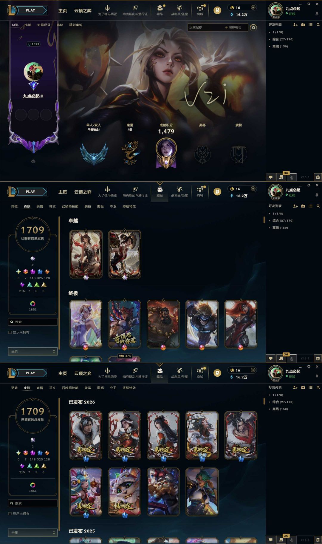 1641皮肤〓可排位妹子号白银〓全英雄〓72神话〓26臻彩〓摄魂至臻艾希派克泽丽永恩卡莎神王灵魂莲华
