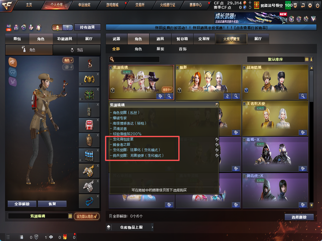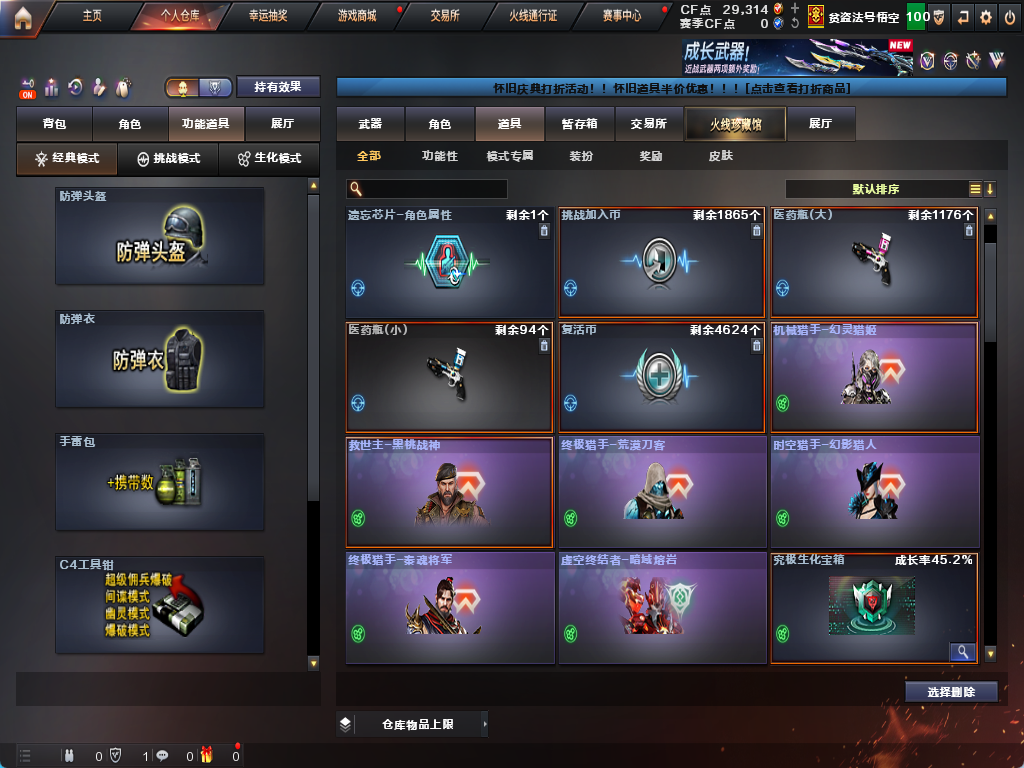 生化炽芒蝶刃♉斯泰尔蝴蝶♉时空猎手♉四防生化背包♉G36C-幻影幻神可排位♉6烈龙♉满榴弹无6盘6烈