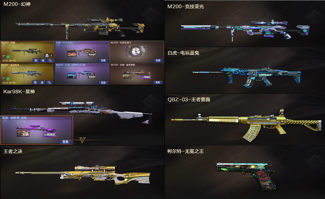 爆破装❤幻神4皮白鲨2022音效卡+星神枪娘默❤白虎蓝兔+王者QBZ蔷薇裁决❤无冕之王雷霆王者之锋