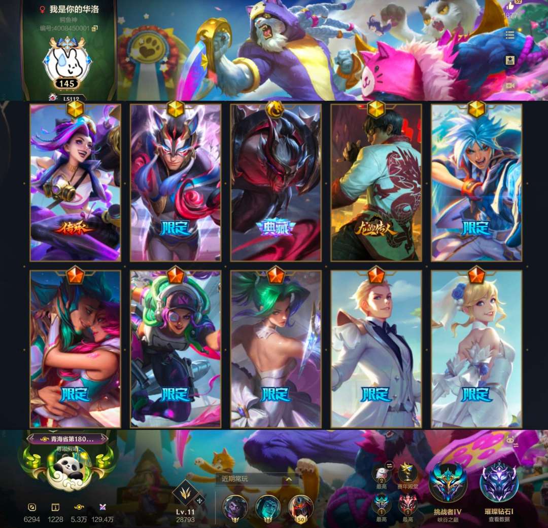 可排位❤️16.4万收藏分告白气球限定已买❤️国服收藏188名❤️760皮肤❤️永恩终极皮肤白龙回城