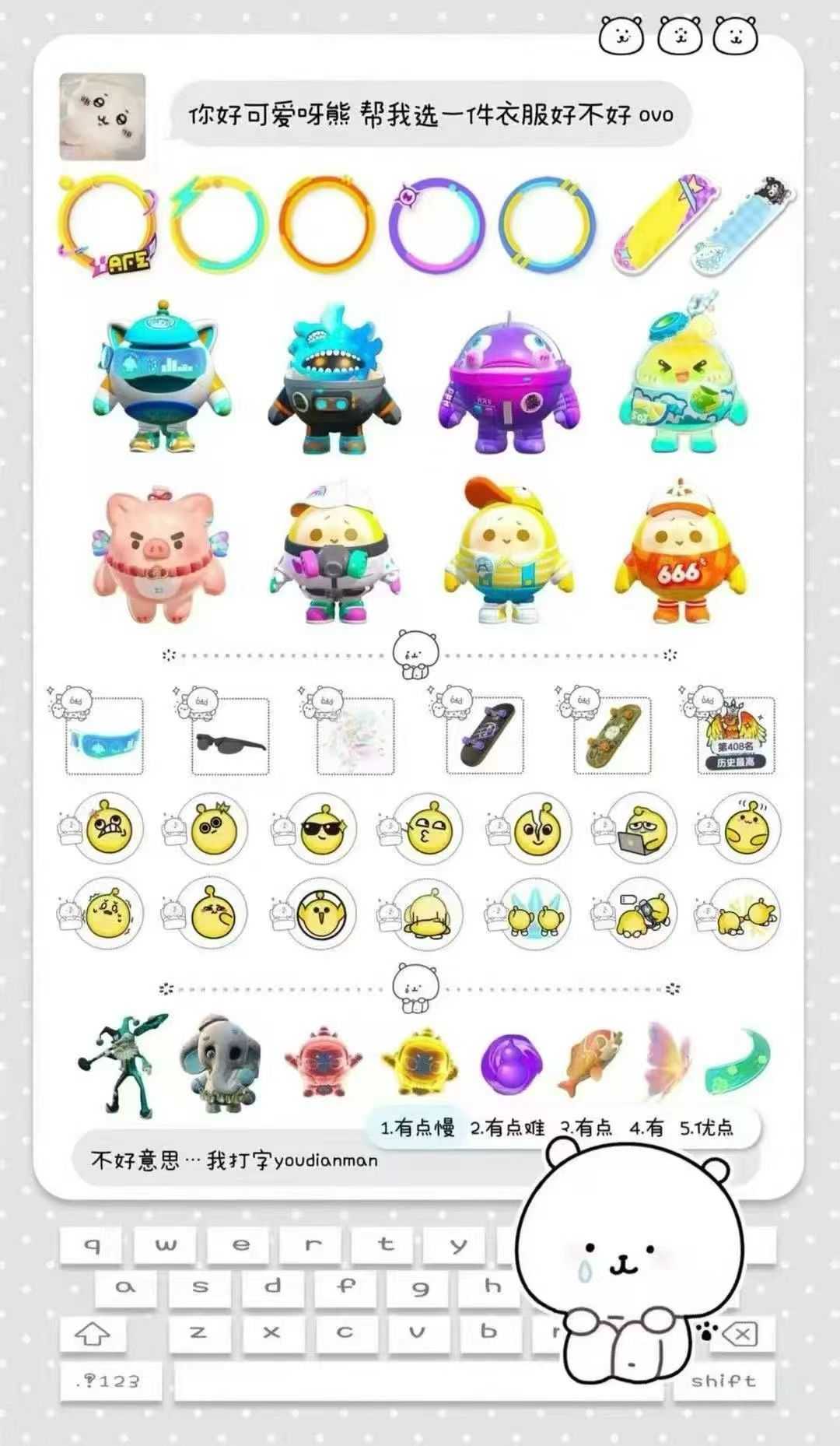《ID干湿》小蓝帽全息护目镜闪电头像框迷你滑板表情吹口哨生气巅峰历史408