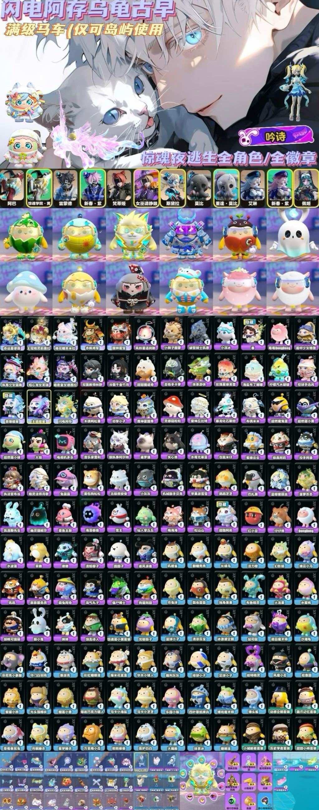 极品词组ID无知/虎虎沙滩龟/小羊全衣橱/草莓羊线条小狗水波蛋emo云惊魂夜全角色满级徽章