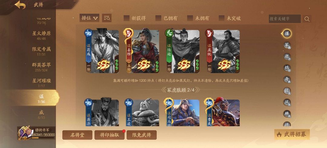 360将高质国护军4威3神3大谋9小谋5乐7豆蔻6锦瑟2钟灵