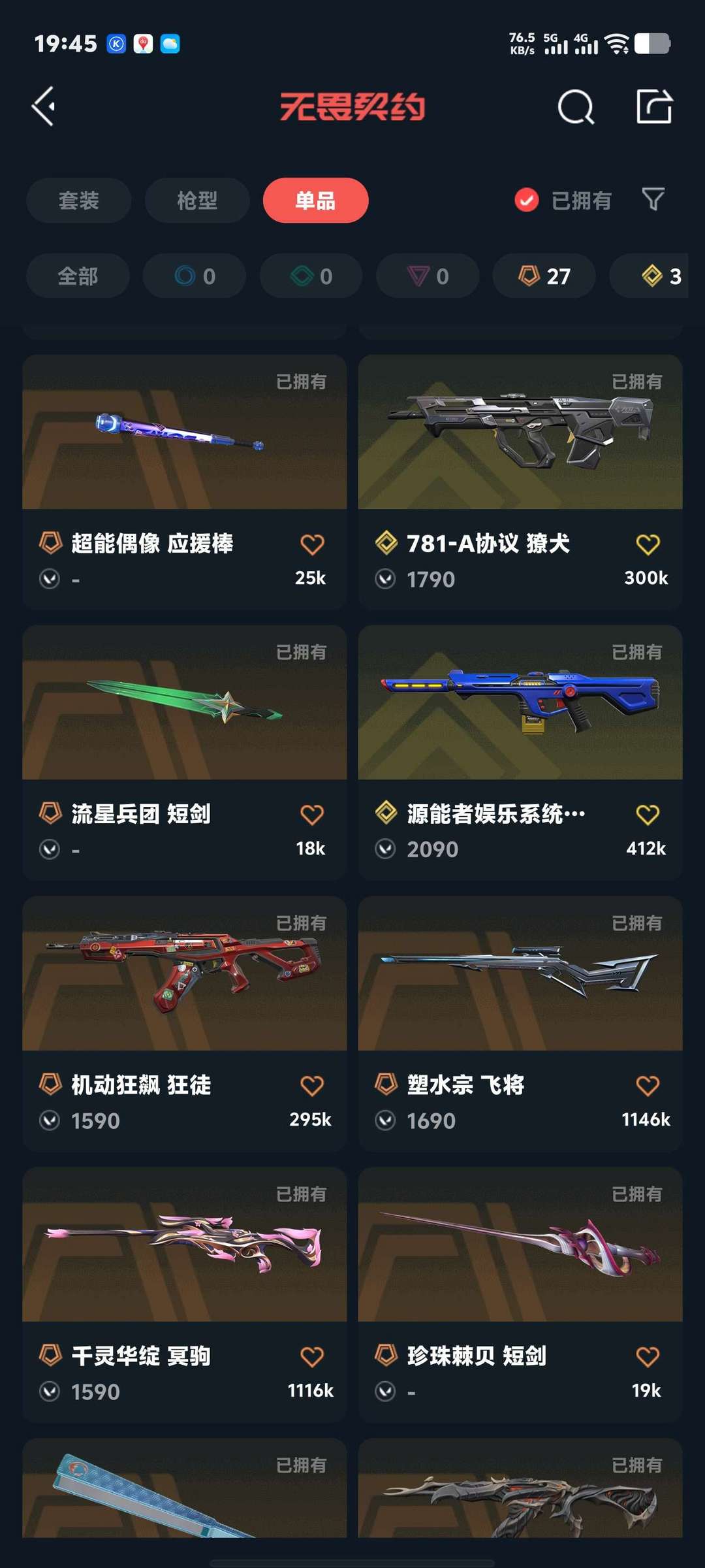 【黄金II】刀皮三棱,ak盖亚混沌,幻影侦查紫金,掠影戍卫,离子大狙,离子正义,奇点骇灵