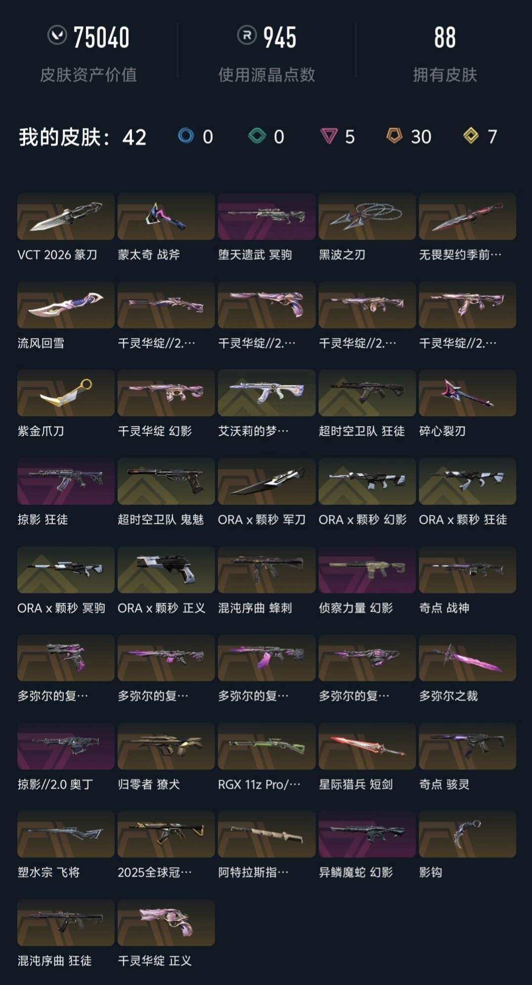 【铂金II】全英雄离火刃22冠军套25冠军套vct25爪流风飞雪猫猫千灵显卡混沌塑水宗紫金ak 侦察幻影