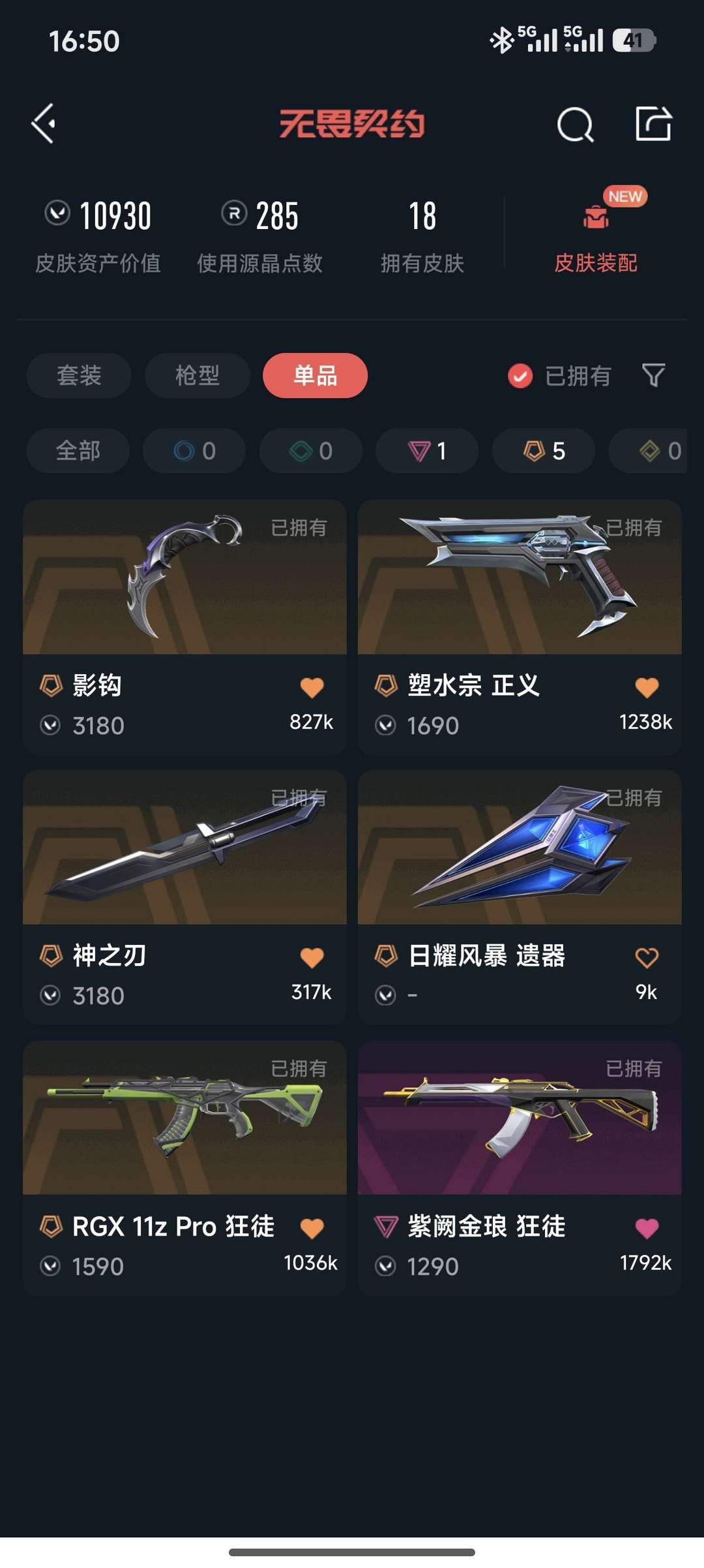 【铂金I】93皮肤碎心裂刃紫金爪刀VCT25冠军套无畏契约账号出租