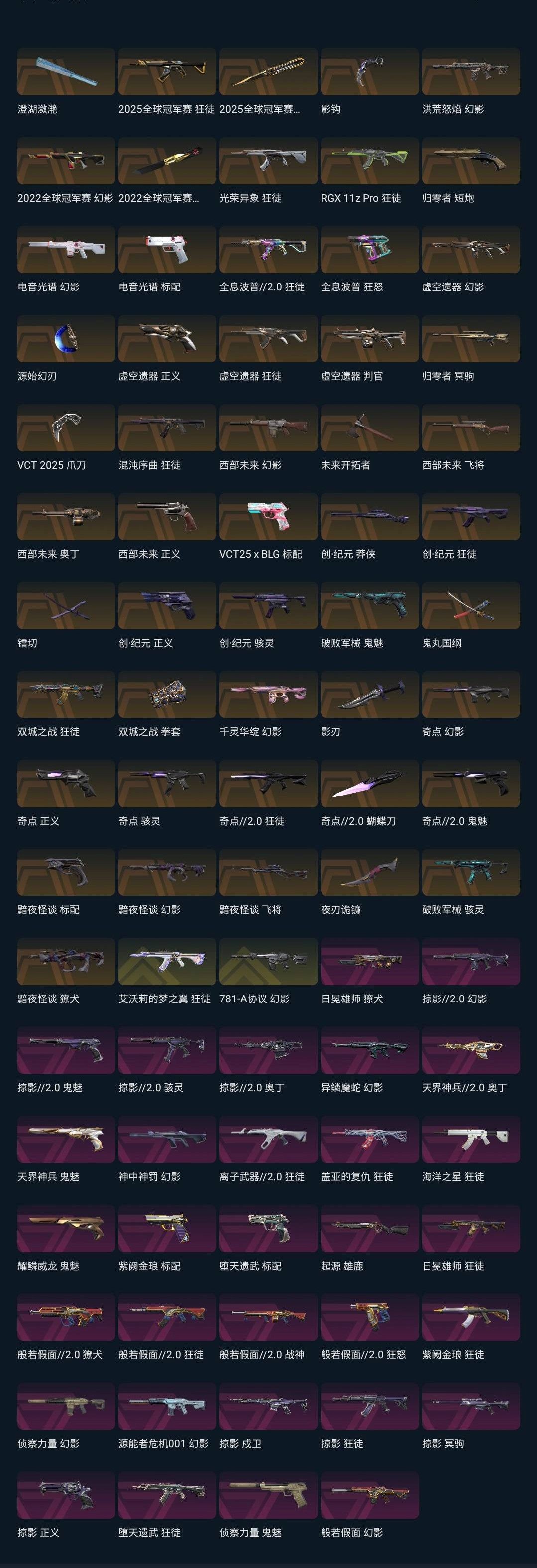 【当前段位:黄金I】可排✅25冠军⭐掠夺爪刀显卡爪穿花蝴蝶⭐紫金掠夺猴子狂徒⭐离子弃王归零者冥狙⭐天界飞将⭐VCT标配
