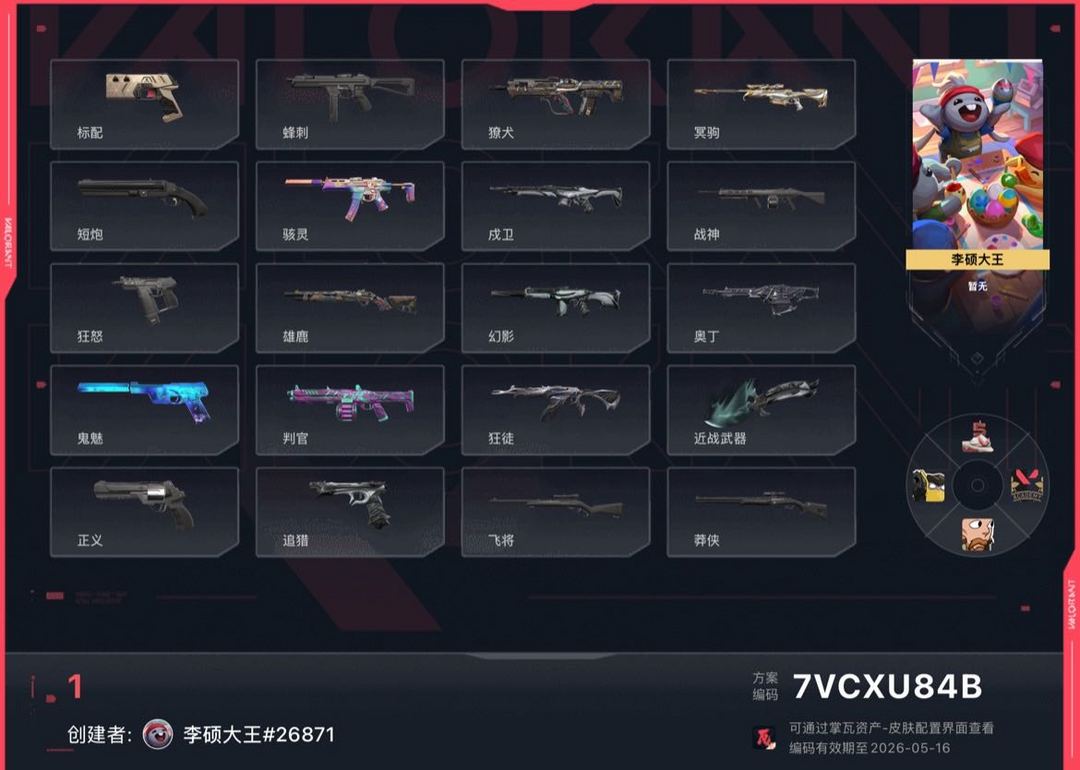 【铂金I】25冠军vct爪刀爆爆ak,皮肤详细如图,欢迎来租