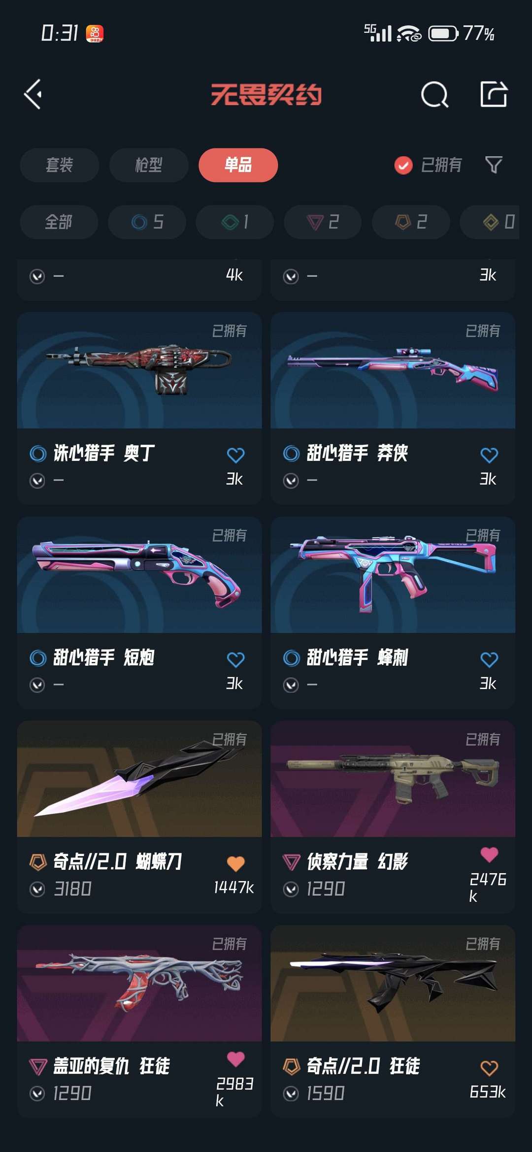 【铂金II】段位未定级 刀皮数量8 枪皮数量42 皮肤资产价值34160 已用R点510