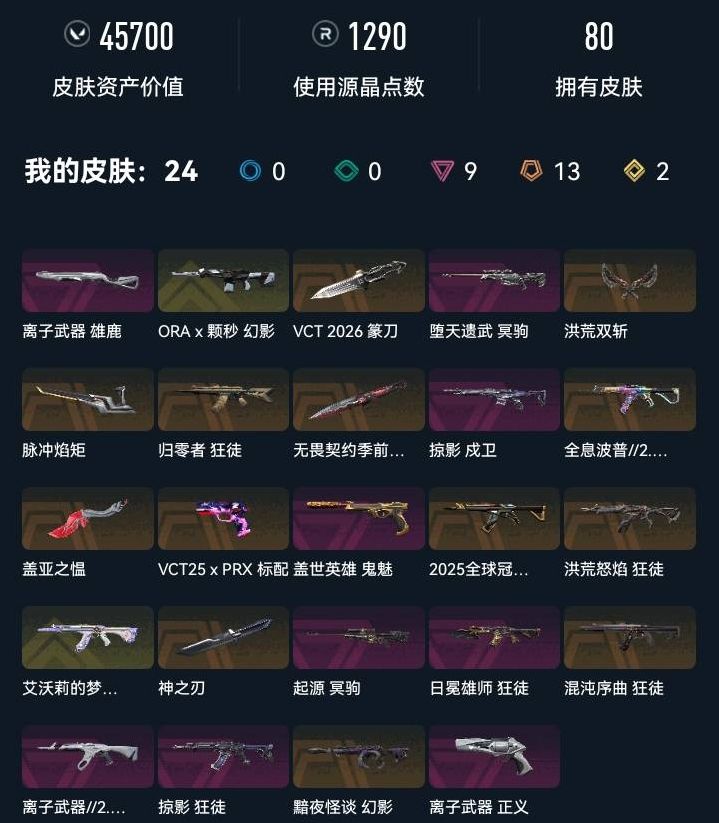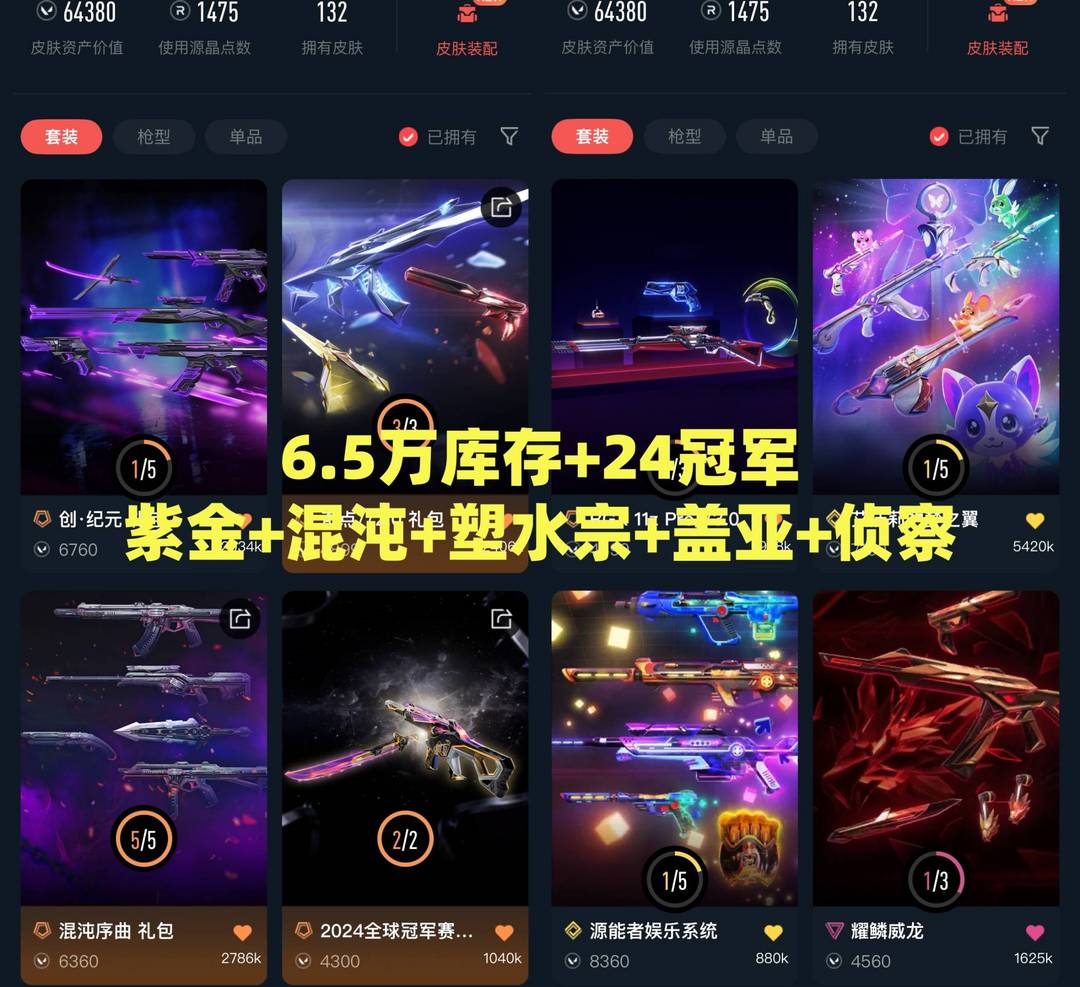 【铂金I】24冠军套+电音光谱+归零者/狂徒鱼缸+鎏金+盖亚/幻象光谱+24冠军+侦察/武器鎏金太极扇紫金爪等