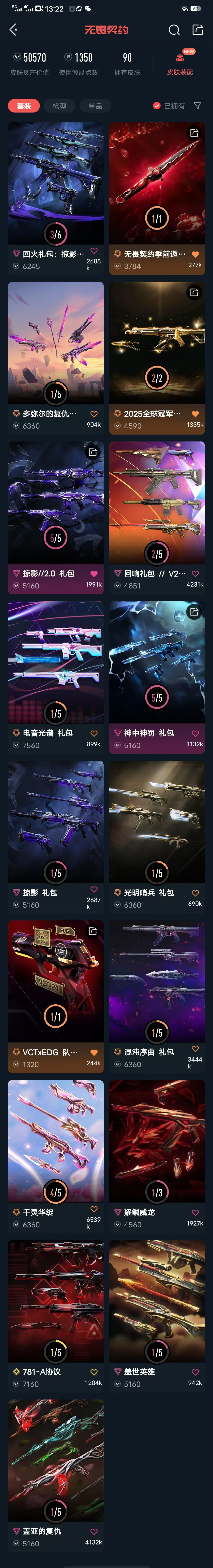 【铂金II】22冠军一套,掠影一套,回火奇点一套,21冠军皮一套,苍龙一套