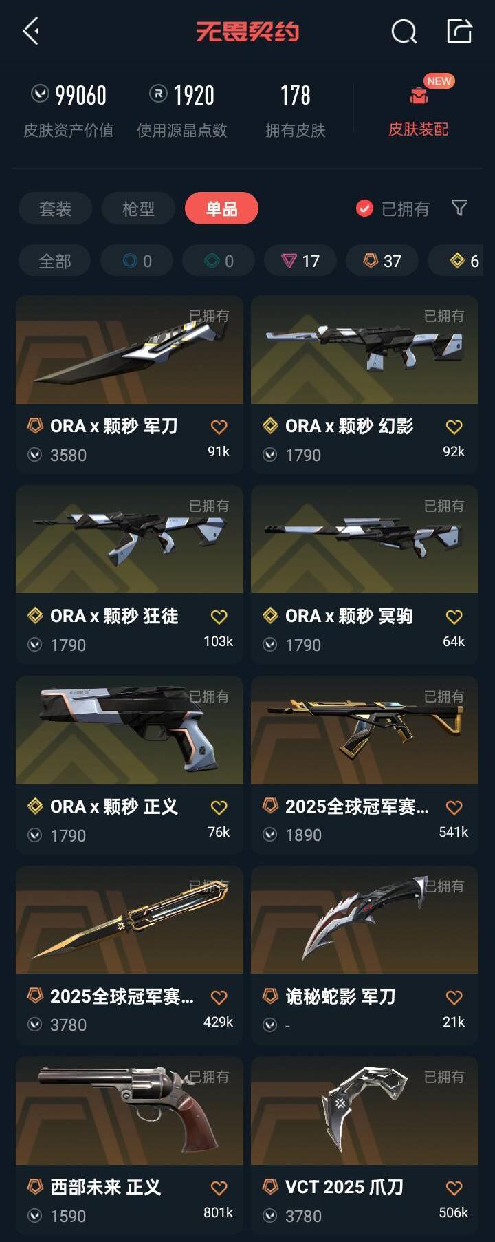 【当前段位:黄金II】冻结三分钟重上 ORA颗秒套2025冠军套全特效VCT2025爪刀奇点2.0套全特效千灵华绽套