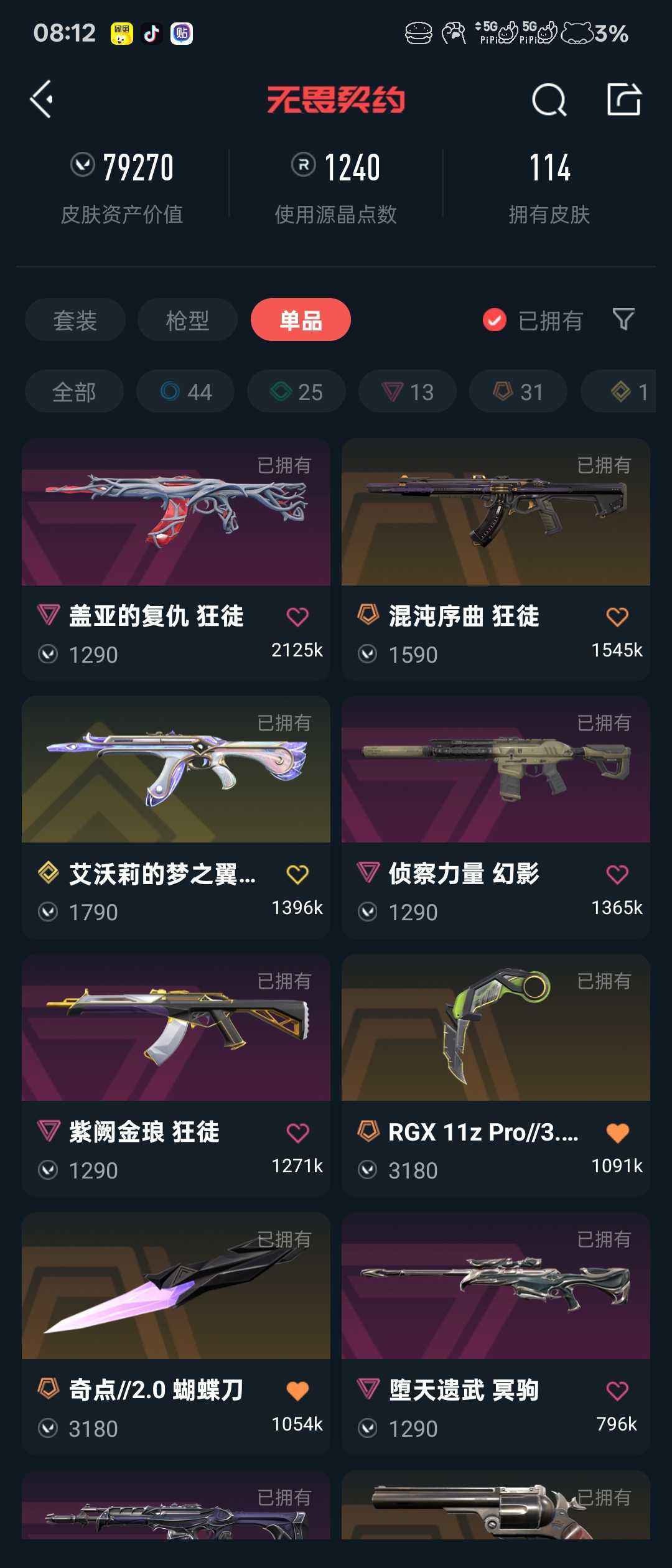 【当前段位:白银II】❌禁排⚡21+25冠军套+西部套+塑水套+光明套⚡VCT爪刀奇点蝴蝶刀仙女棒⚡双城之战星守AK