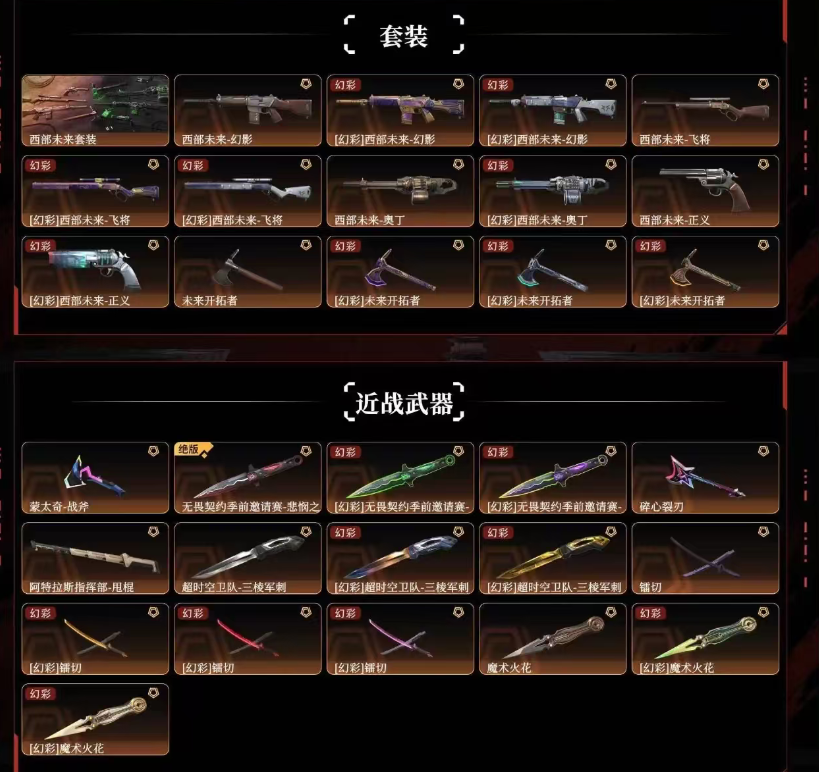 【铂金I】特效拉满✨西部掠影套✨混沌序曲塑水宗双城紫金威龙堕天狂徒✨781神兵幻影vct蝴蝶刀显卡爪刀