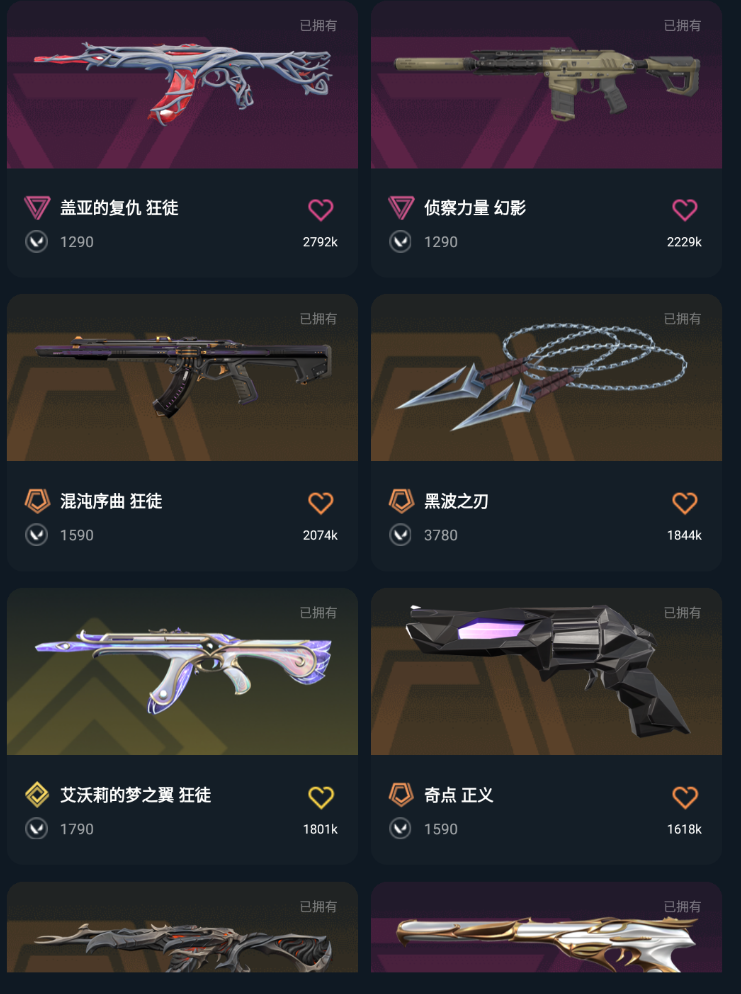 【铂金I】威龙般若2套✨混沌序曲塑水宗紫金机动狂飙盖亚的复仇掠影双城狂徒✨侦察幻影vct奇点正义显卡爪刀蝴蝶刀