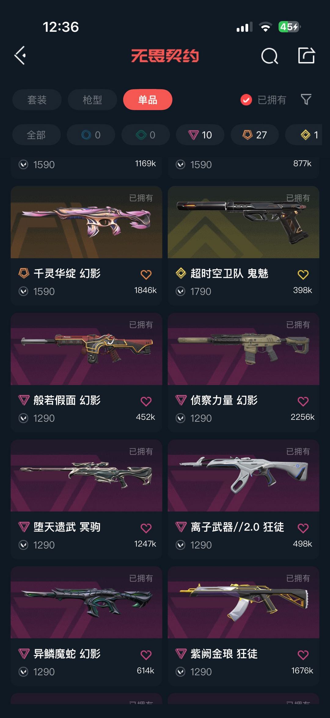 【当前段位:黄金I】全角色,15个内购皮肤(非通行证),狂徒两个,幻影1个,刀皮一个,冥驹2个