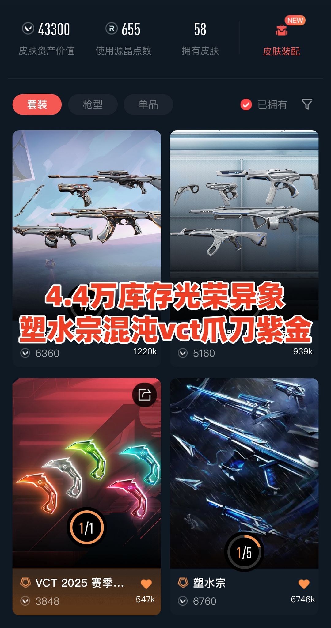 【当前段位:黄金III】禁排✅4.4万库存⭐光荣异象离子鱼缸塑水宗盖亚混沌紫金⭐剥皮紫金爪vct爪天御刀⭐西部未来侦察天界