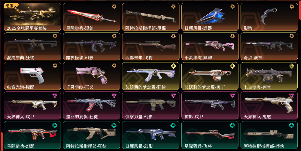 【当前段位:黄金I】完美库存✨限定25vct爪刀✨归零2.0套✨堕天威龙盖亚离子2.0起源狂徒✨西部正义✨vct标配