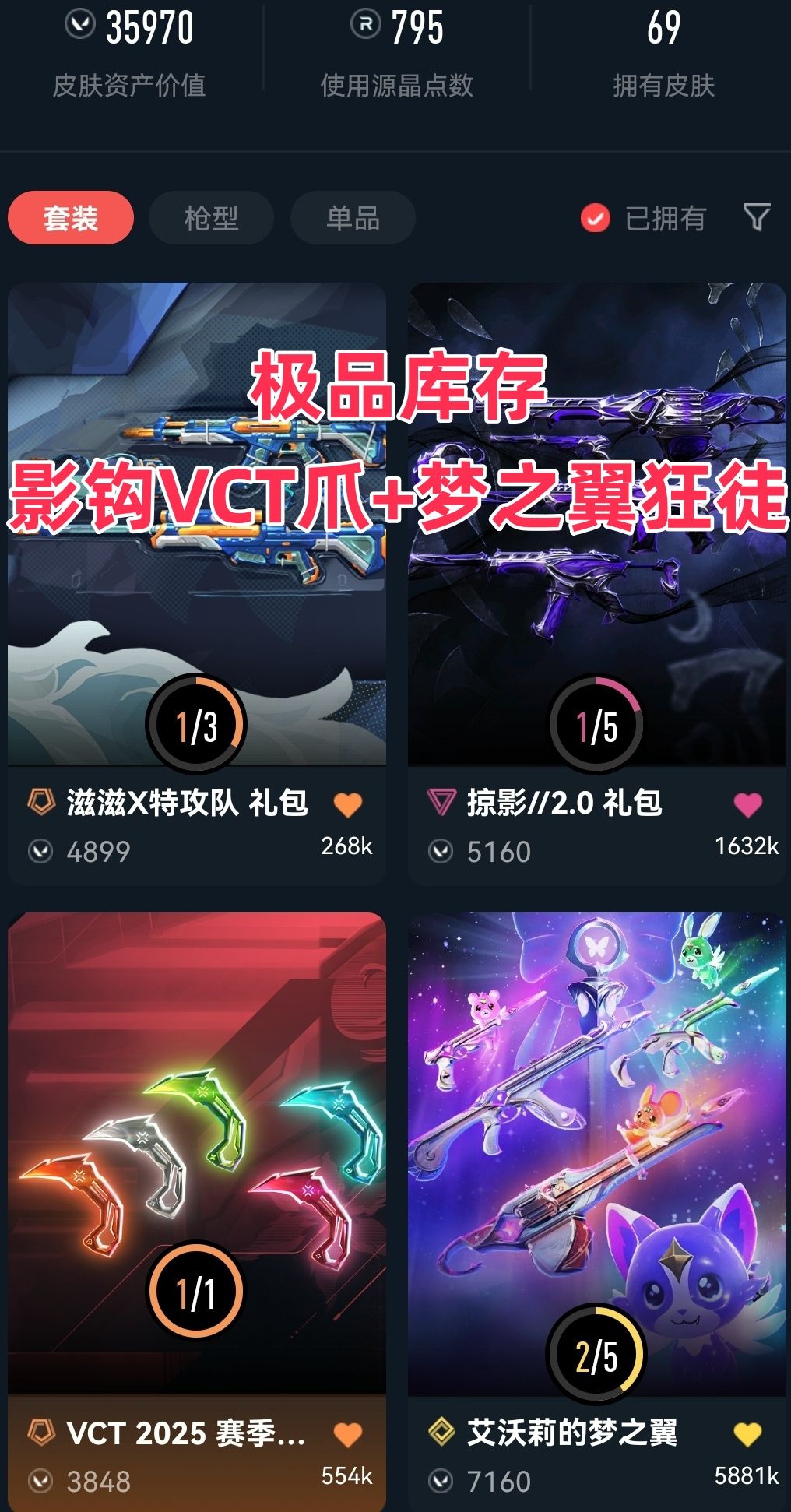 【当前段位:铂金I】【可排】16W库存❤VCT25爪❤西部套❤21/23冠军套❤双城混沌套❤显卡套❤奇点2掠夺套❤