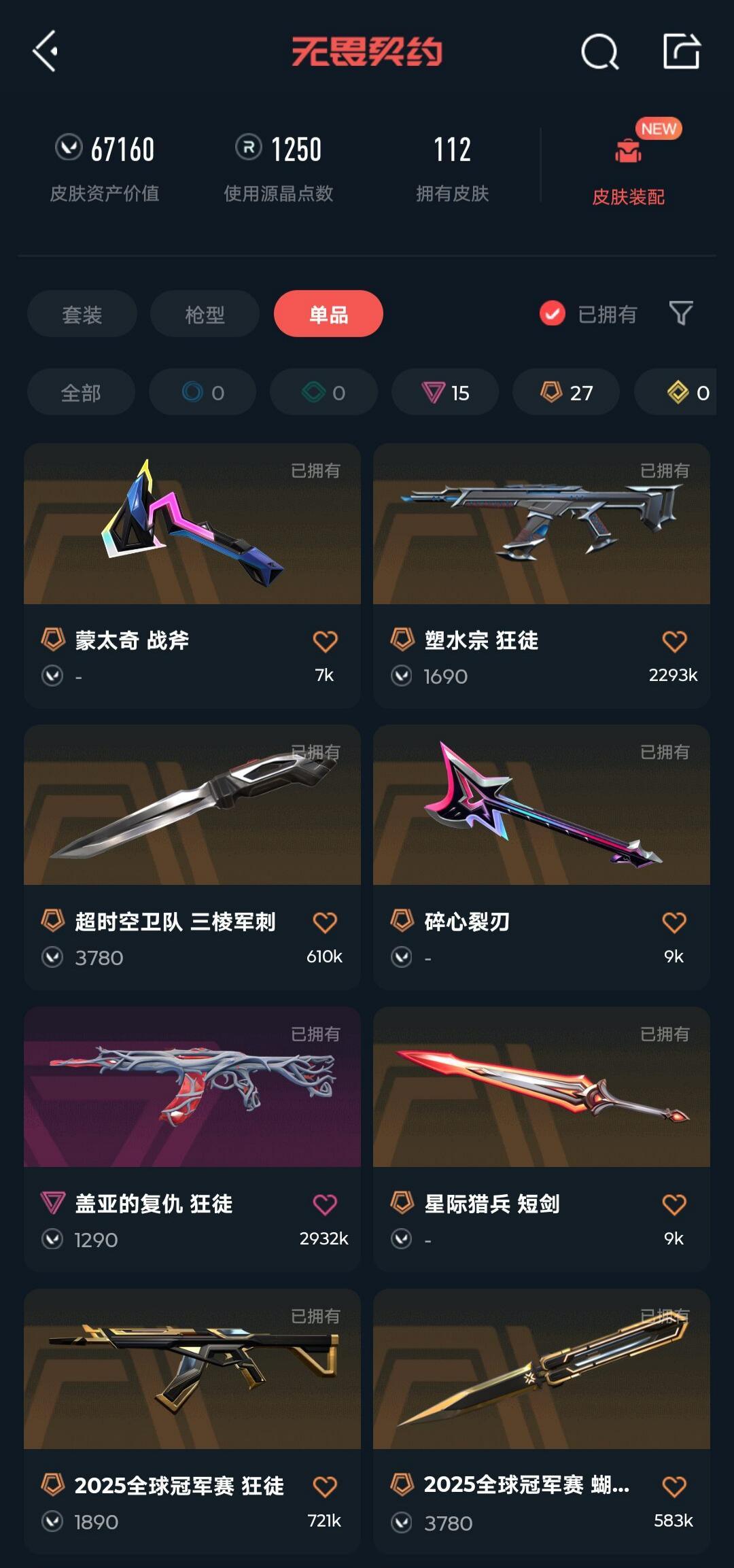 【黄金II】可排 冻结三分钟重上 V25神挂饰ORA颗秒套2025冠军套超时空卫队套2023冠军套耀鳞套神兵套