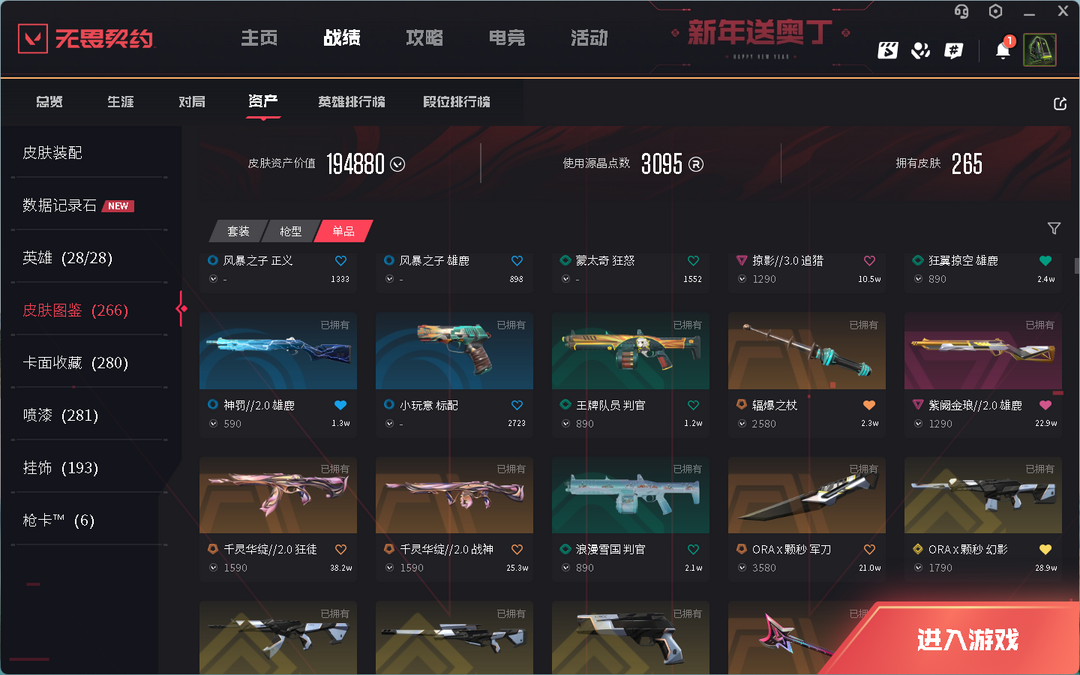 【当前段位:黄金II】不可排位✨全英雄 西部未来全套 奇点2.0套装 2024冠军套 侦查幻影 ak掠夺 盖亚 堕天大狙
