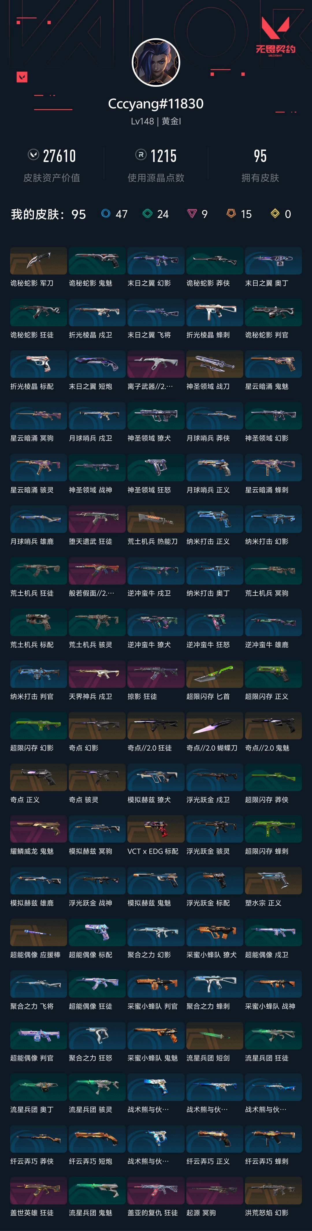 【铂金I】开挂必起诉✅可排位⭐弃王耀鳞威龙ak⭐莲花m4⭐归零者獠犬⭐耀鳞威龙鬼魅⭐ VCT标配⭐澄湖激滟