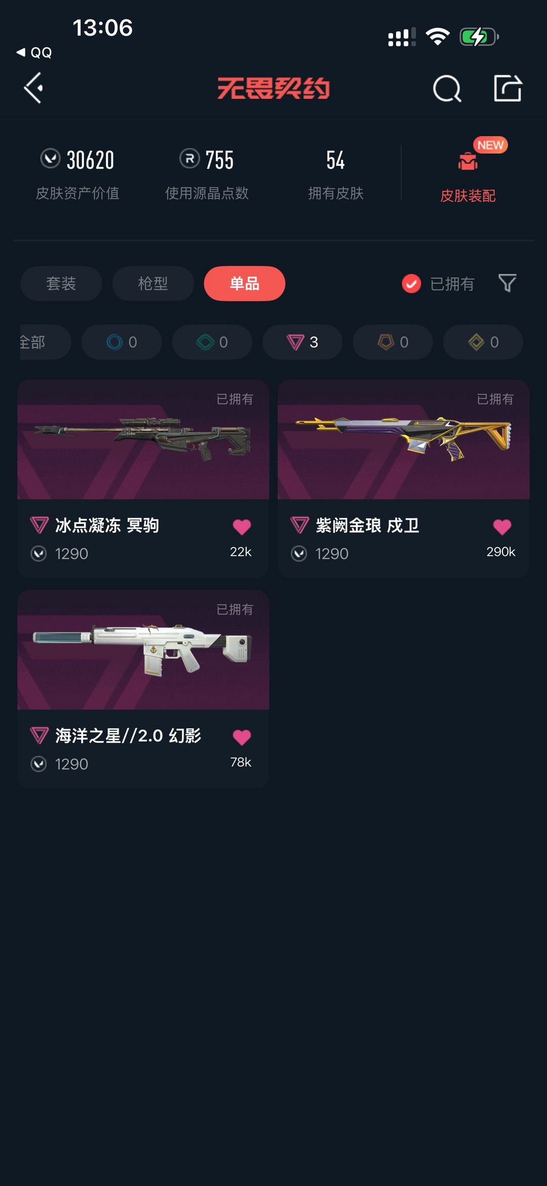 【当前段位:钻石I】奇点颗秒威龙堕天套✨混沌序曲塑水宗盖亚的复仇多弥尔盖世离子光明侦察幻影碎心裂刃剥皮刀显卡爪刀