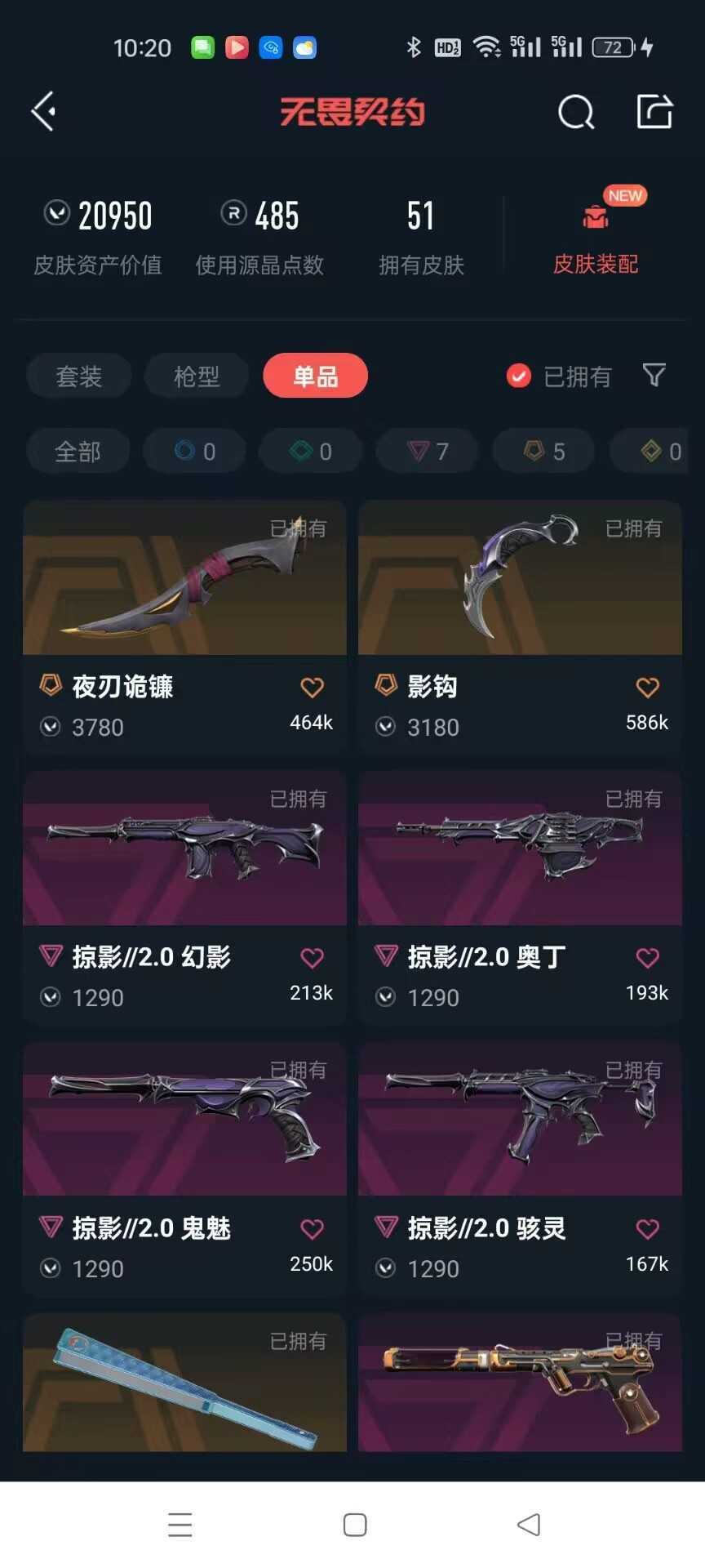 【当前段位:白银III】可排⚡掠影2.0套⚡鱼扇⚡夜刃诡镰⚡掠影狂徒⚡侦查幻影⚡奇幻朋克鬼魅⚡vct标配⚡古