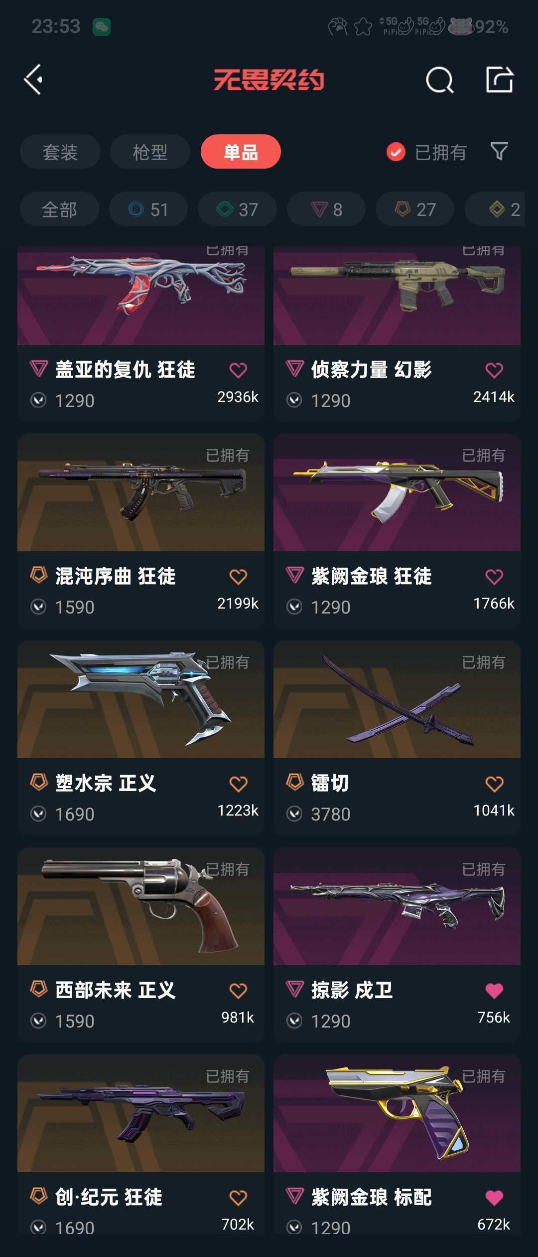 【白银II】23/22/25冠军套♉9万库存混沌紫金狂徒♏RGX爪刀奇点正义影钩全炫彩♐洪荒般若幻影掠影西部正义