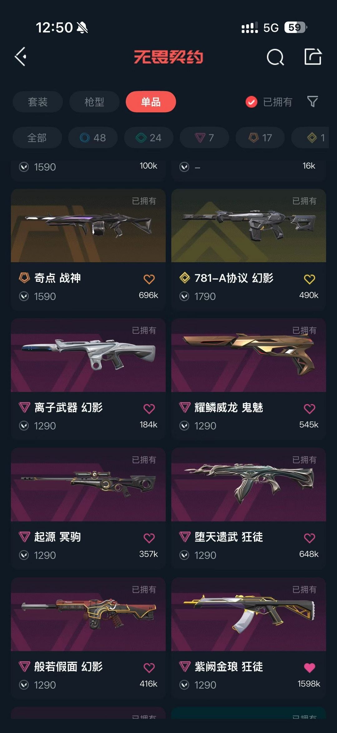 【铂金I】可排位10万库存1800R|22/25冠军套|荆棘圣骸套|VCT篆刀/爪刀/怜悯|塑水宗混沌流脓AK
