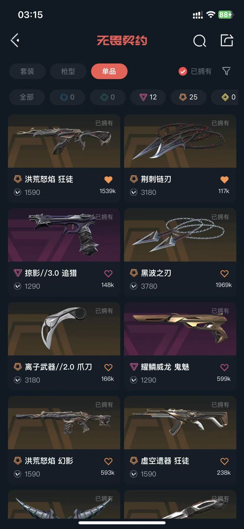 【黄金III】噬影者扇子鬼魅西部未来奇点2.0般若2.0显卡爪剥皮刀混沌离子紫金双城狂徒异鳞魔蛇幻影掠影戍卫