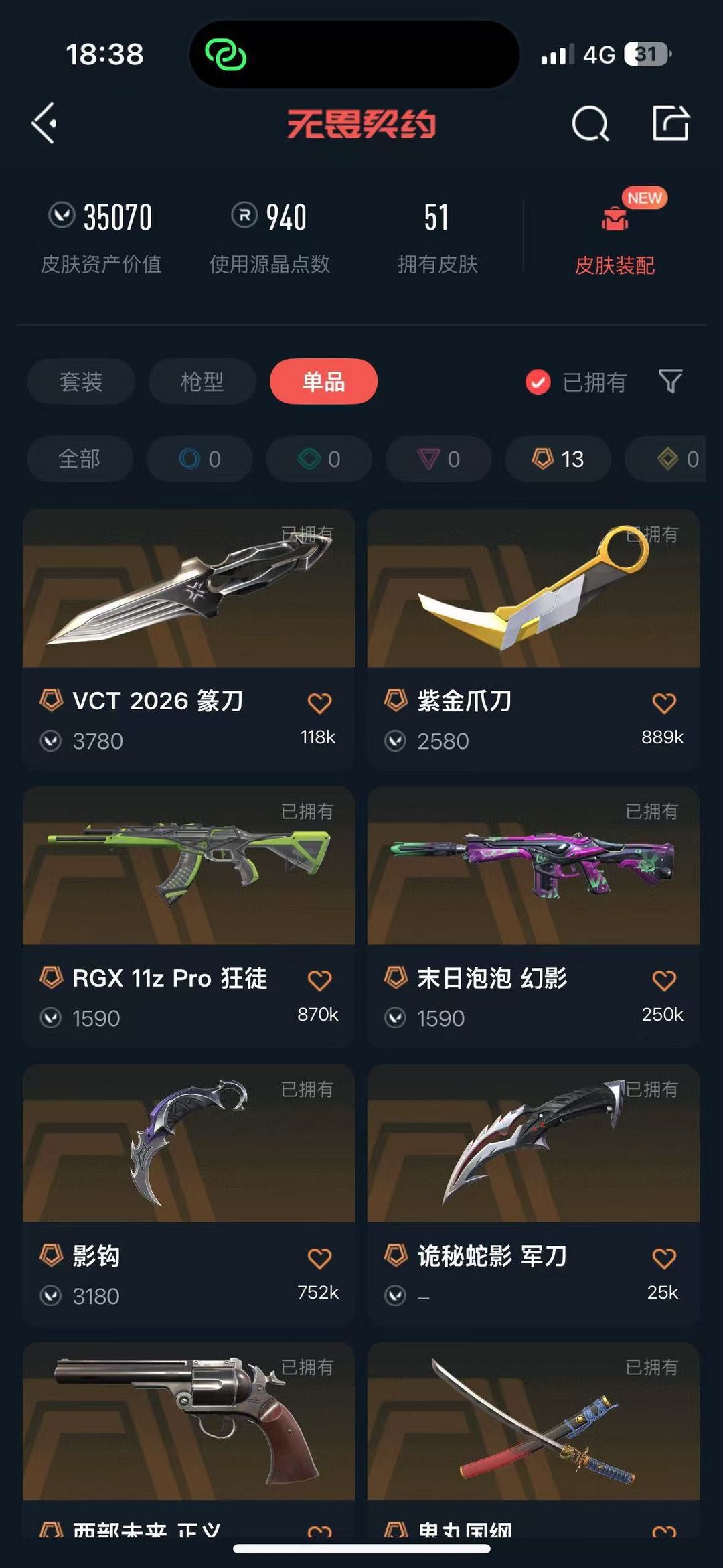 【当前段位:铂金II】24冠军套❤️混沌序曲狂徒威龙之刃❤️VCT2025爪刃RGX11ZPro狂徒超限闪存