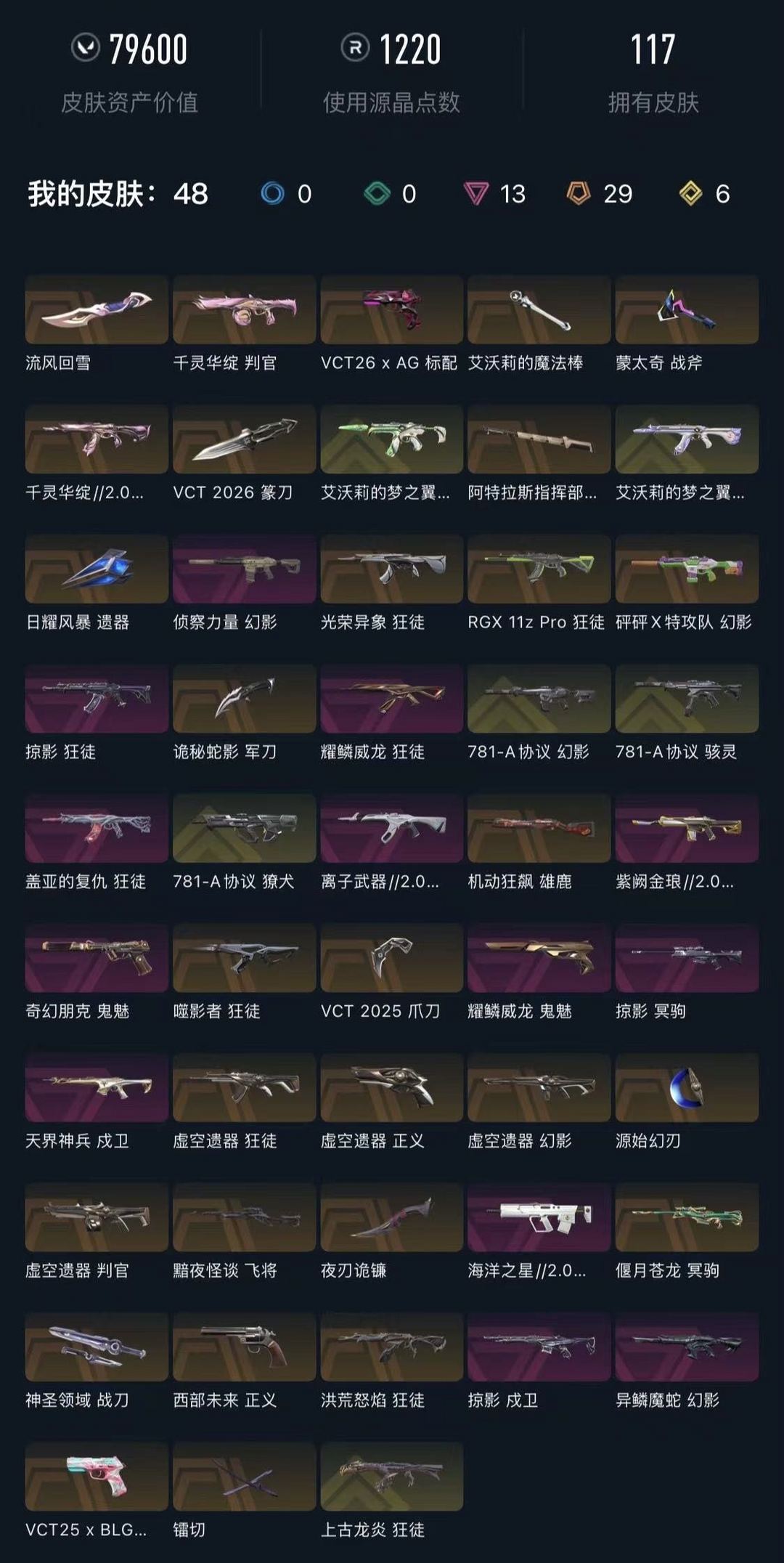 【铂金II】可排位✅22⭐️25冠军套⭐️VCT限定⭐️影钩⭐️千灵华绽⭐️RGX11Z⭐️苍龙⭐️塑水⭐️洪