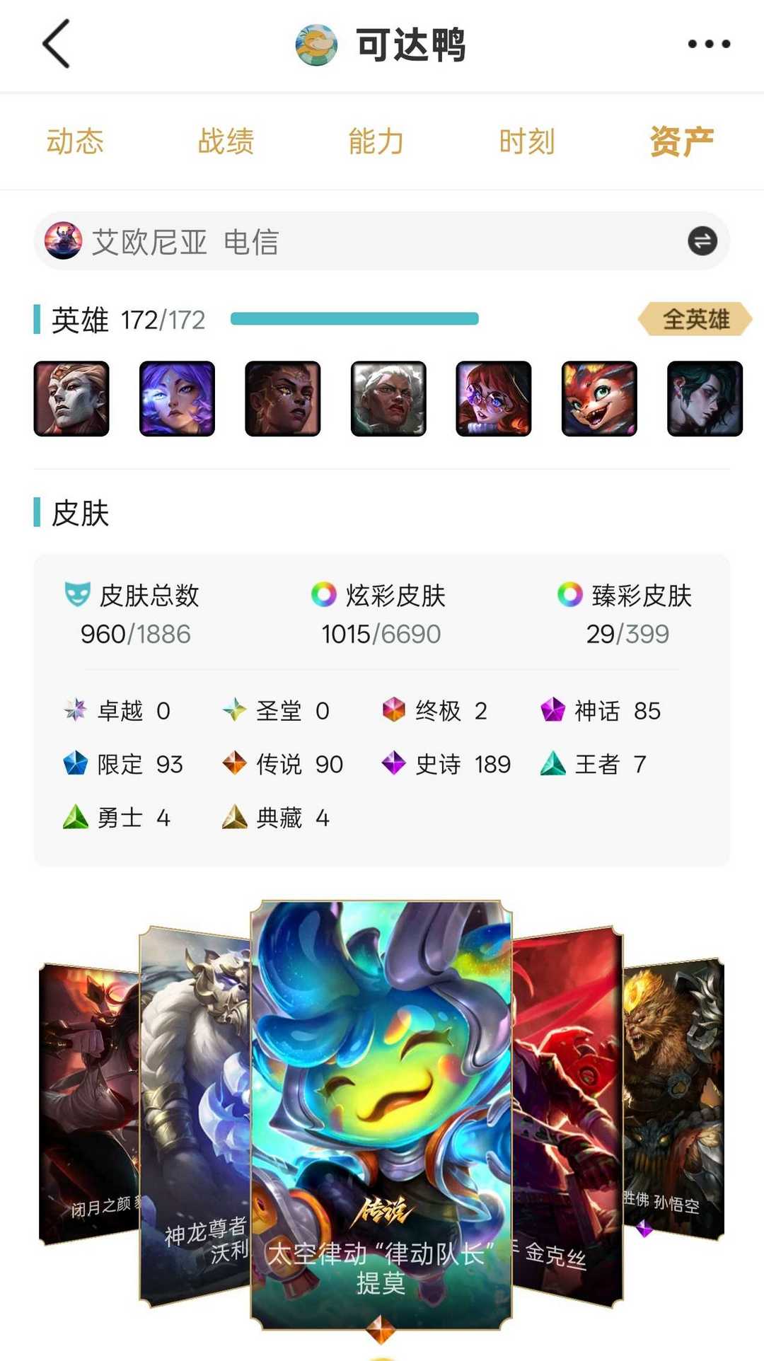海斗满级【艾欧尼亚】960原皮+1015炫彩⚡88至臻神话⚡彩虹马⚡泳池佐伊⚡鸡里奥⚡永森奥恩