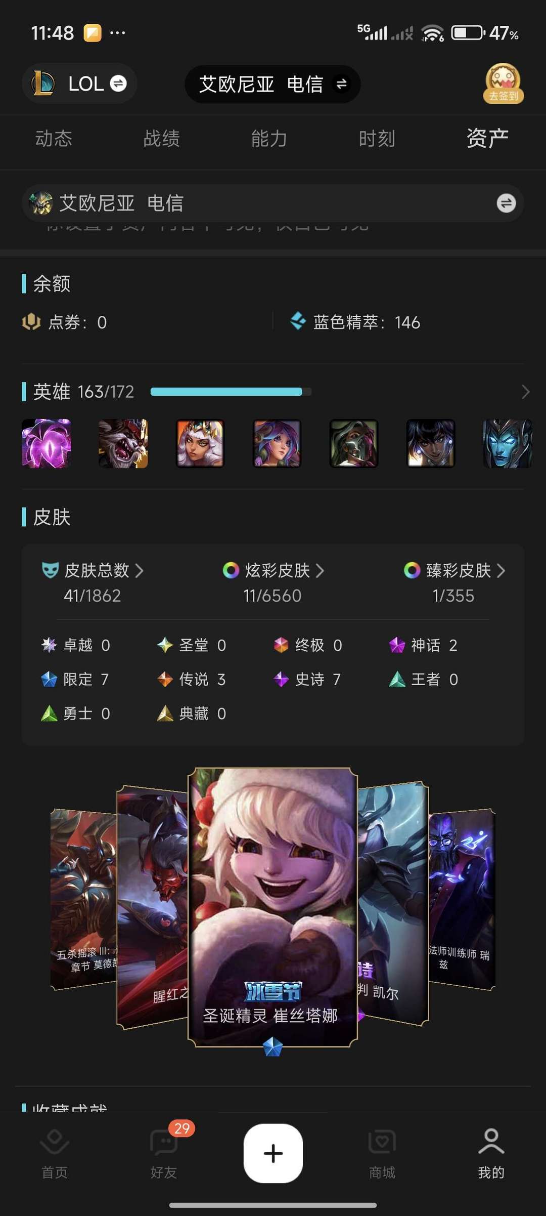 全英雄❤18神话❤47限定皮肤冠军系列❤历届冠军皮肤❤传说33精品❤可排位❤无押金