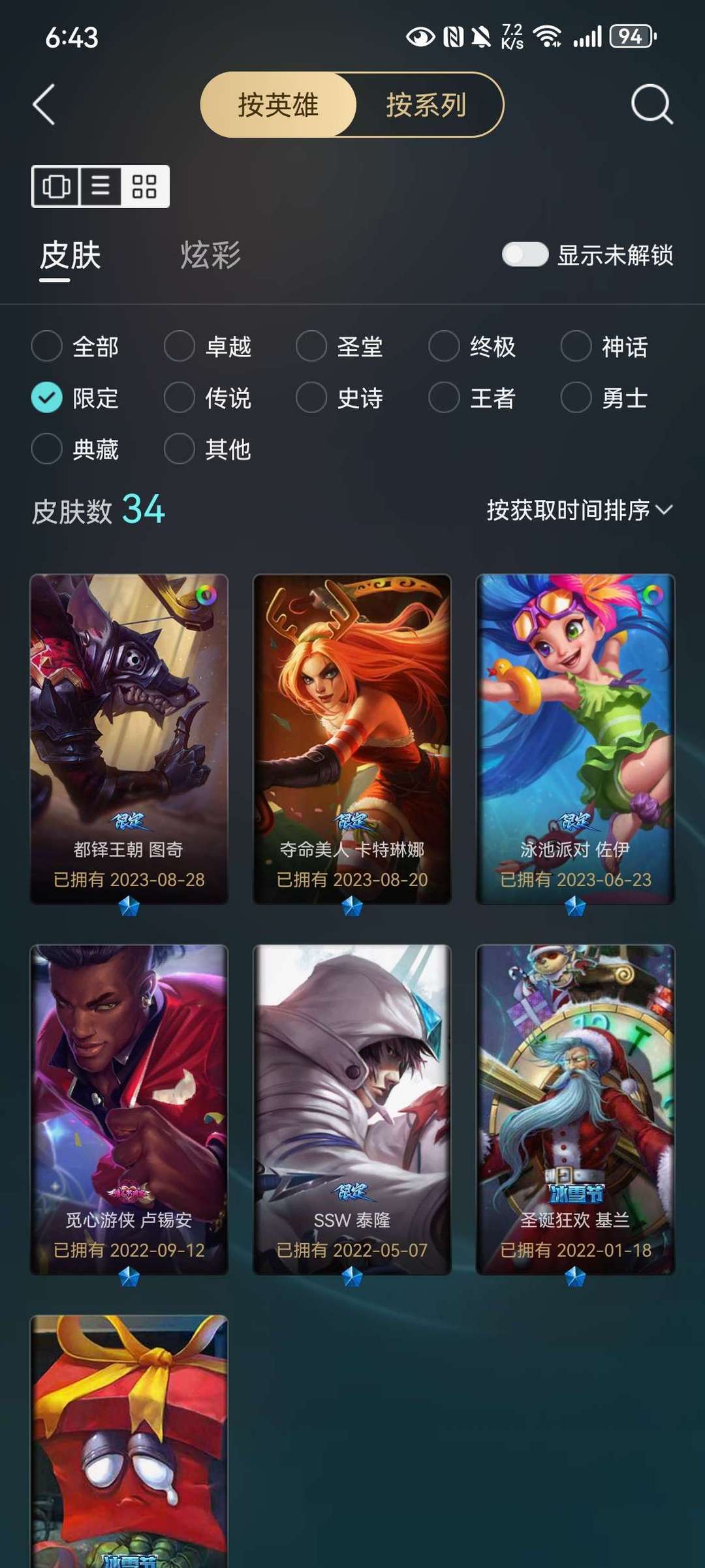 全英雄,皮肤一百多个够用,云顶开过几次宝典,小小英雄特效棋盘够用。