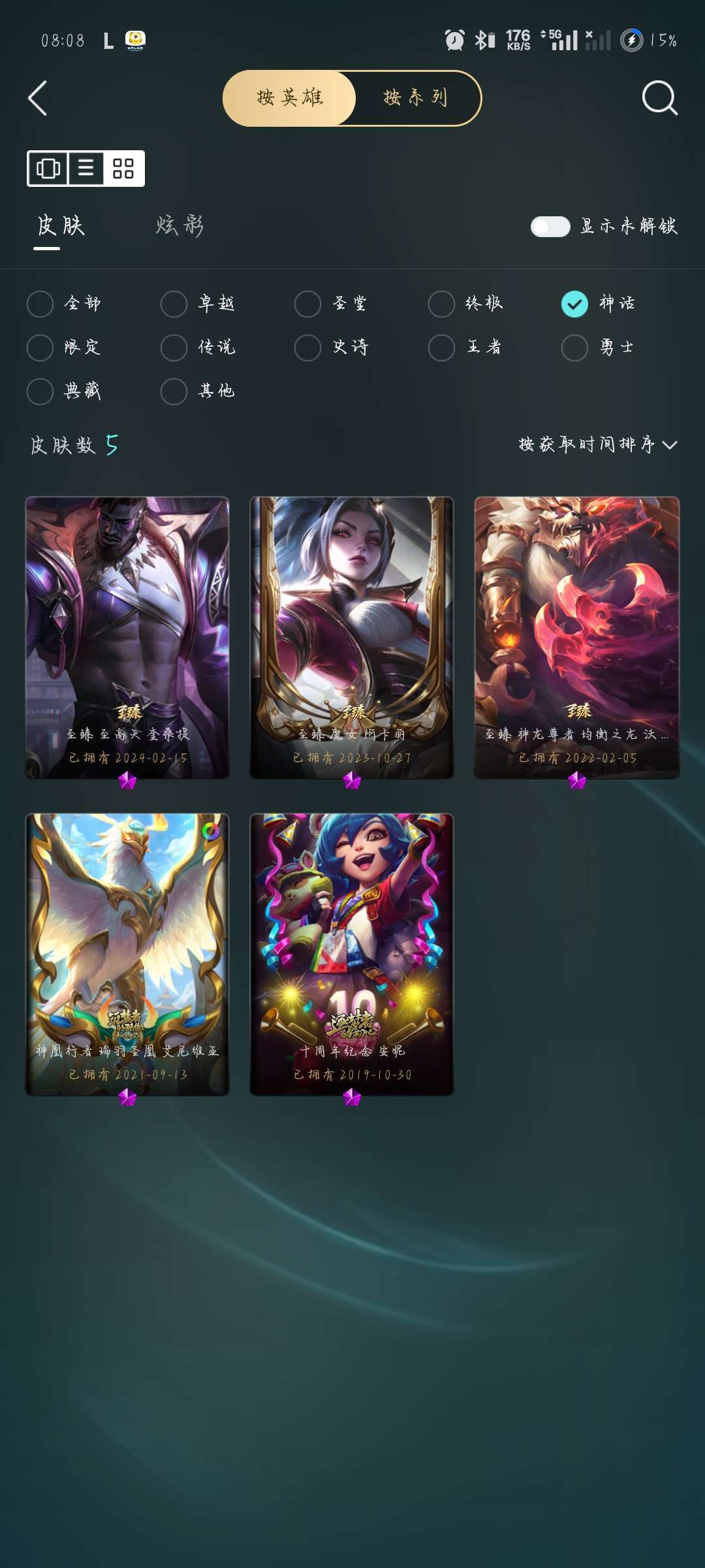 348级17臻彩2终极25神话62限定47传说43史诗399皮肤157炫彩全英雄可排位