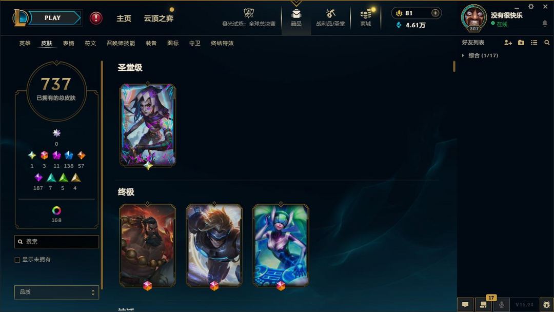 传说48 史诗32 神话14 限定54 大部分英雄都有皮肤(可排位)