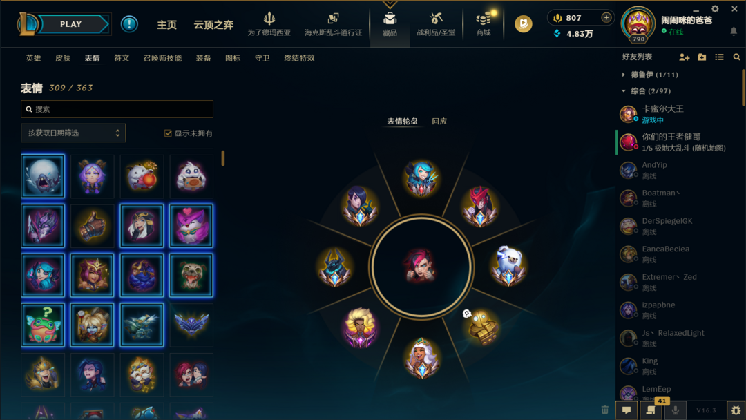【联盟三区】千皮❤王者表情❤锐雯全皮❤海克斯大乱斗极品账号