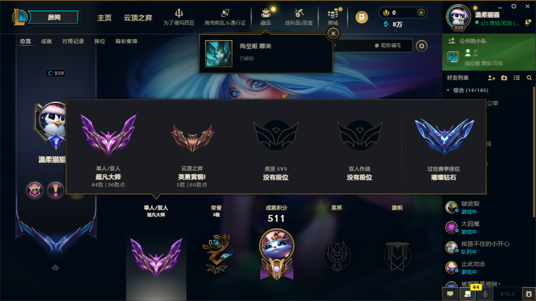 S16大师可排位❤️单双大师❤️ID可查❤️高分高端局体验❤️艾欧尼亚❤️带妹首选高隐藏分多赛季高分