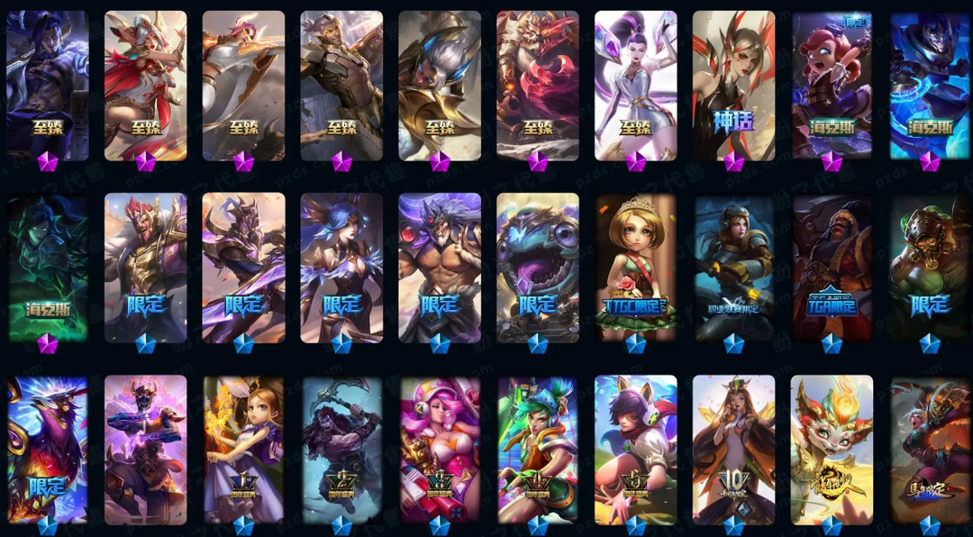 9999皮肤商城号✨全新马年套全神话全至臻全系列✨全龙瞎全年限全冠军套✨全宠物全生肖全棋盘皮肤✨