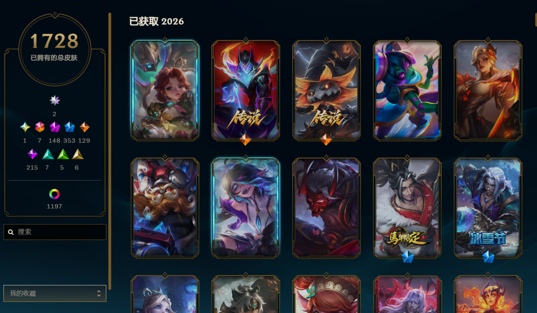 英雄170皮肤541终极2 神话23限定97传说65史诗114