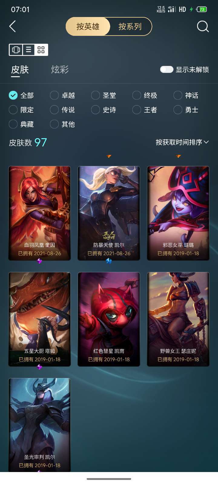 360皮肤可排位 龙马烈焰全皮肤 圣洁神王诺手 圣堂铁男 拉克丝熊猫全臻彩 各种至臻限定传说皮肤