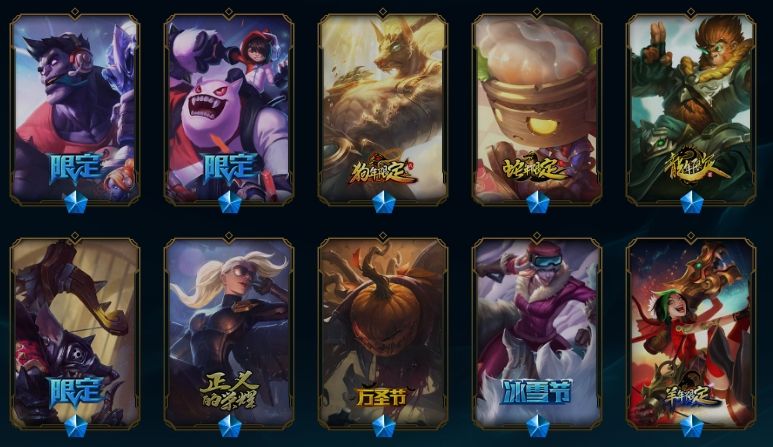 艾欧尼亚♉白银♉270皮肤♉未来战士DJ♉电玩勇者龙年冠军套♉嫦娥觅心女王冰雪节泳池派对♉女主播丧尸