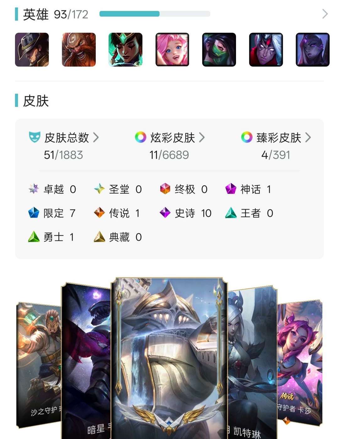 【德玛西亚】181p至臻凯隐神王诺手奥德赛凯隐至臻剑魔拉克丝大天使武装战姬各种珍稀 155小小英雄