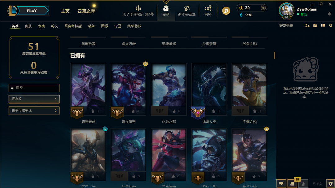 联盟5区 无畏先锋 全英雄+众多至臻皮肤 可排位 可匹配