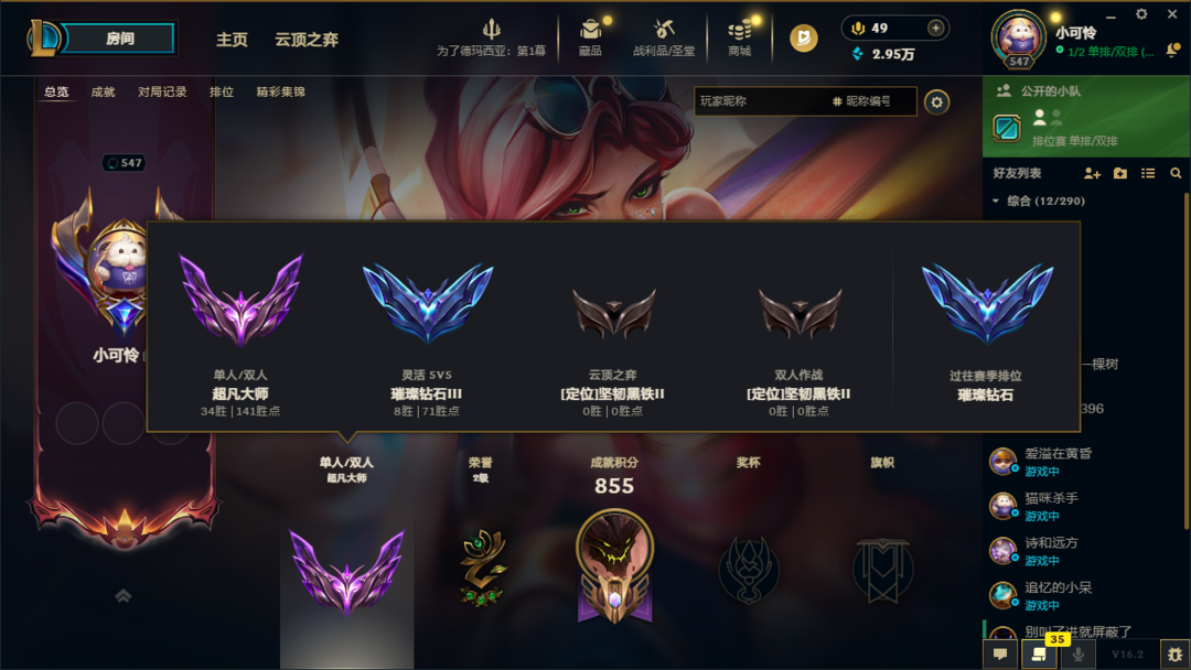 S16大师可排位【千皮】❤️单双大师❤️ID可查❤️高分高端局体验❤️艾欧尼亚❤️带妹首选高隐藏分多