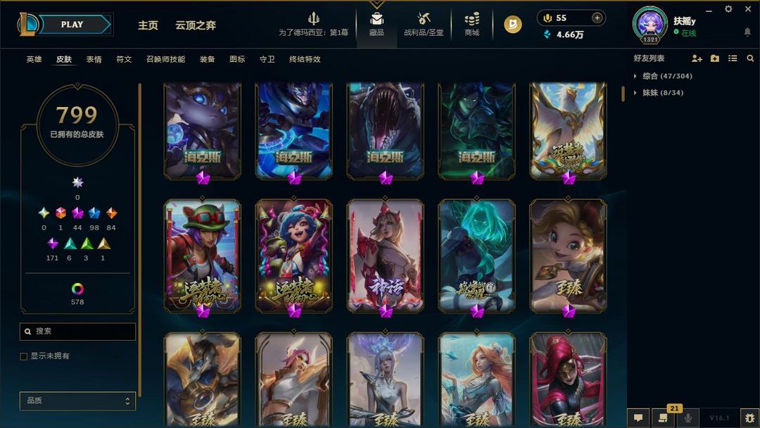 900皮♈可排位白银妹子号♈全英雄♈80神话♈龙瞎-灰烬塞拉斯-青花瓷西部魔影-心之钢♈青铜黄金虐菜