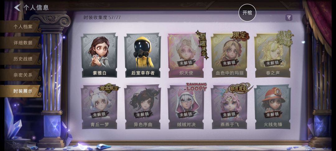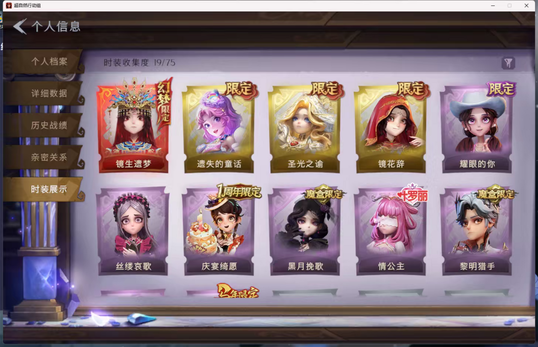 段位:超自然传说,皮肤∶镜生遗梦,镜花辞,遗失的童话,圣光之谕,情公主